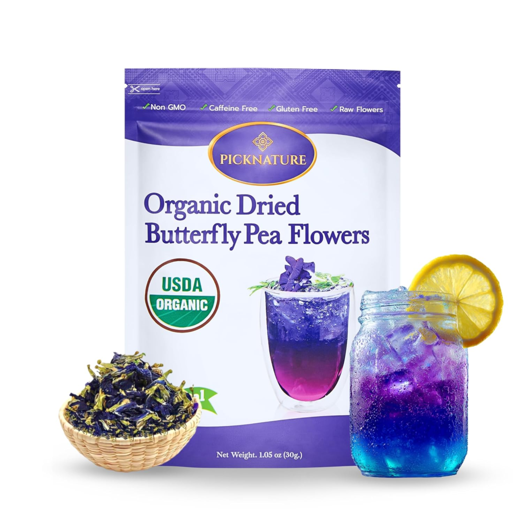 It’s completely natural, caffeine-free, and there’s no artificial food coloring. Just flowers, water, and a little citrus.